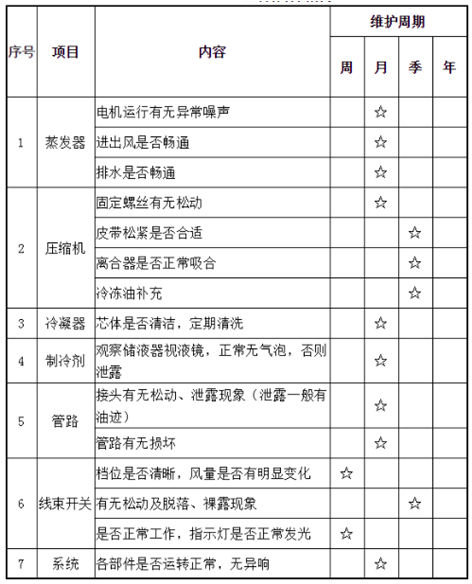 空调保养周期表如下