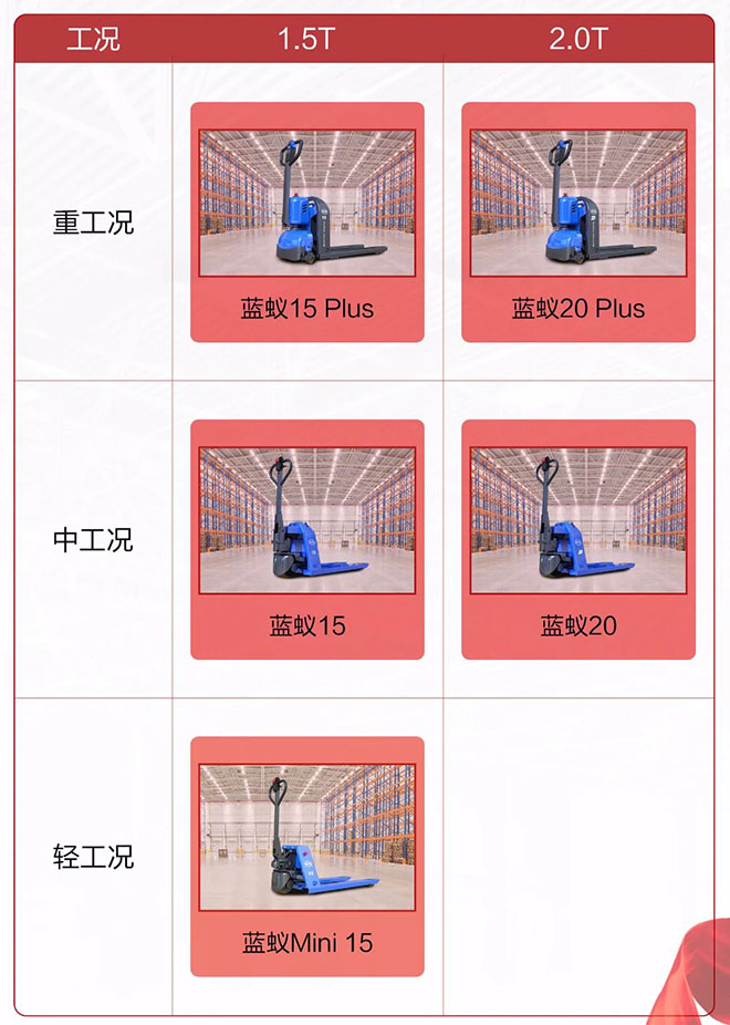 蓝蚁系列产品涵盖轻、中和重各种搬运工况,并精准匹配客户使用需求。